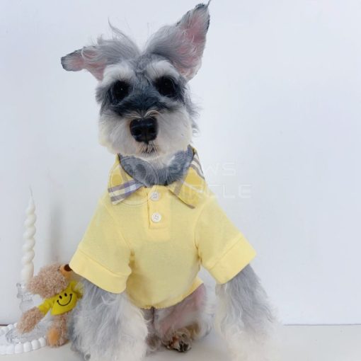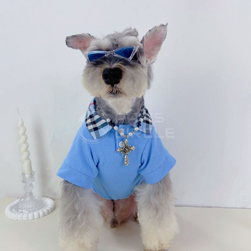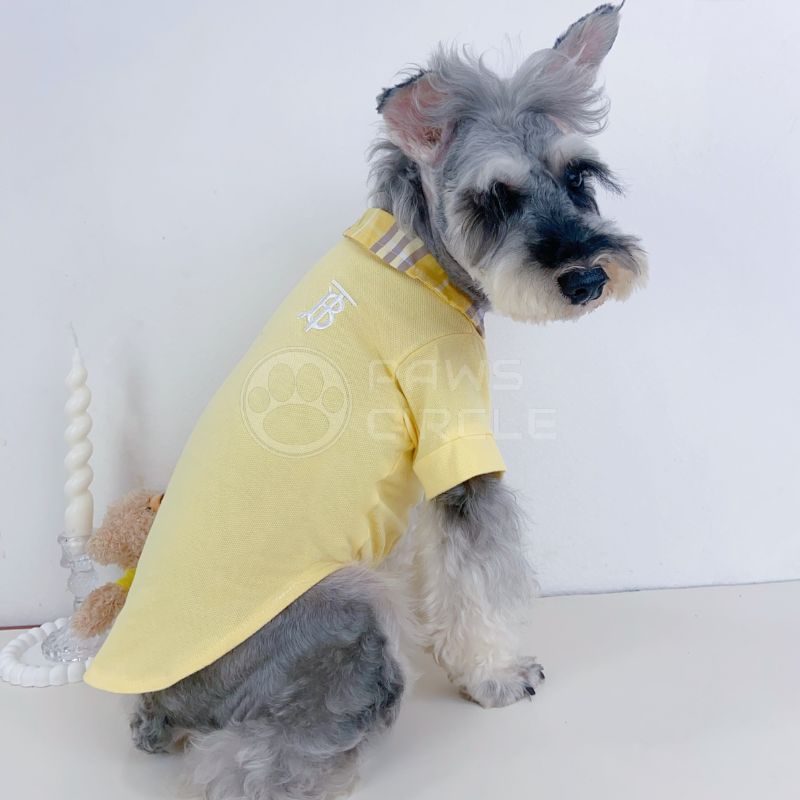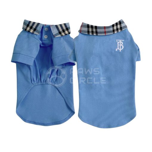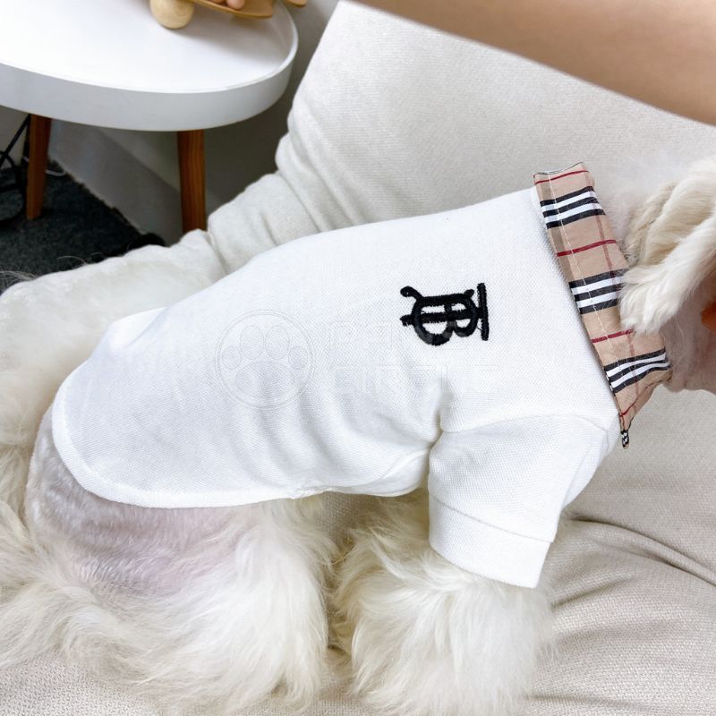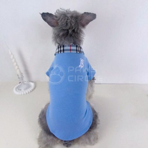 Preppy short-sleeved dog polo with check collar detail, embroidered monogram, and breathable fabric for everyday comfort.