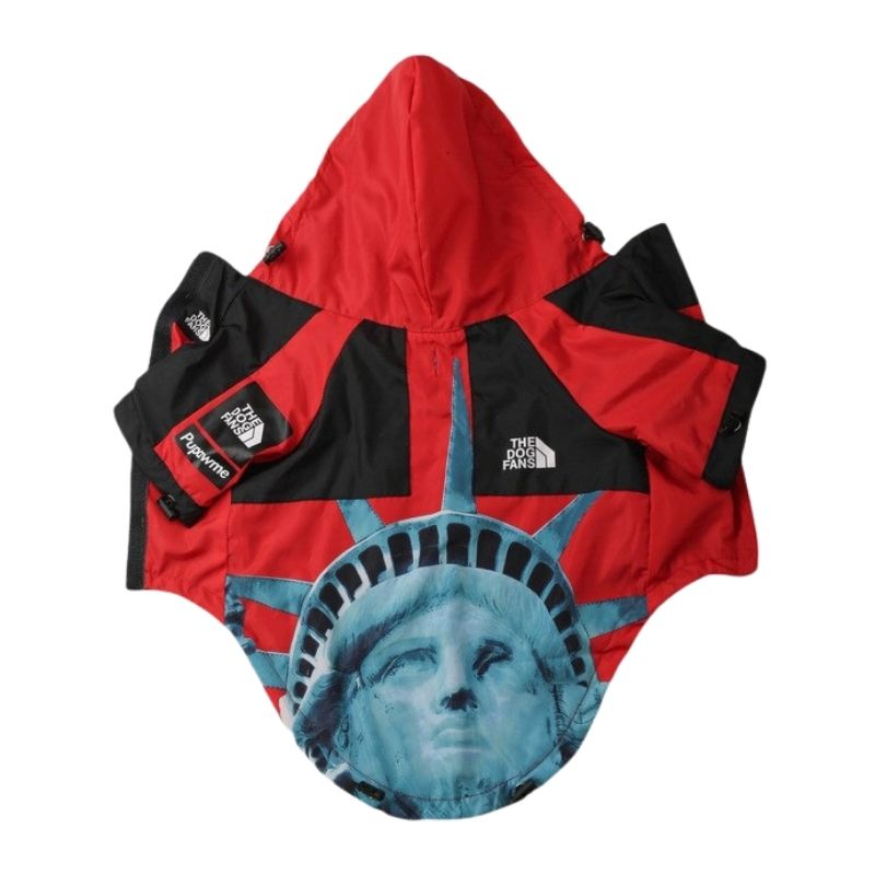 Graphic windbreaker featuring a bold Liberty motif, lightweight waterproof fabric, and easy wear.